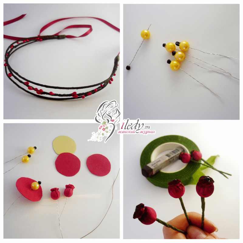 Чтобы изготовить ободок с розами, необходимо приготовить:
