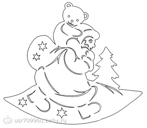 Это достаточно простой шаблон. Следующие являются узорными, поэтому для их вырезания понадобится некоторое терпение. Вот например, такой Дед Мороз.