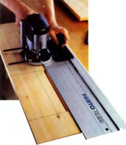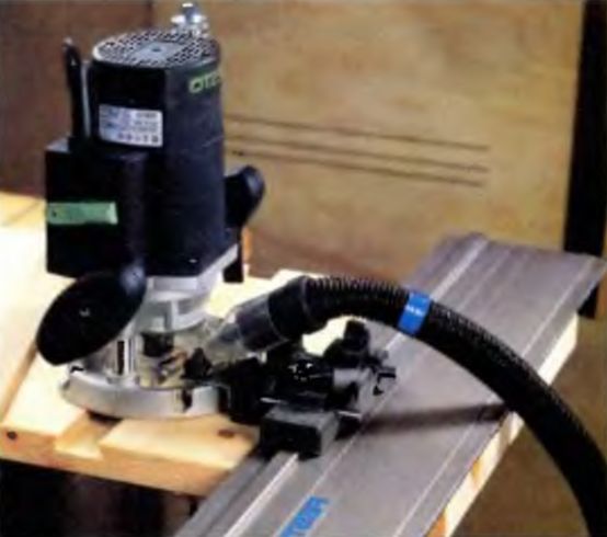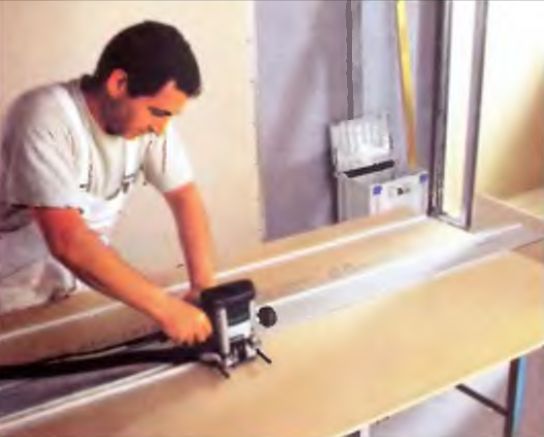 Когда все приспособления будут подготовлены, выполните следующие действия. Положите на верстак заготовку, которую необходимо обработать по всей длине, расположите на ней шину, закрепив струбцинами. Вставьте планку, прикрепленную к подошве фрезера в паз направляющей. Запустите агрегат и профрезеруйте заготовку по всей длине.