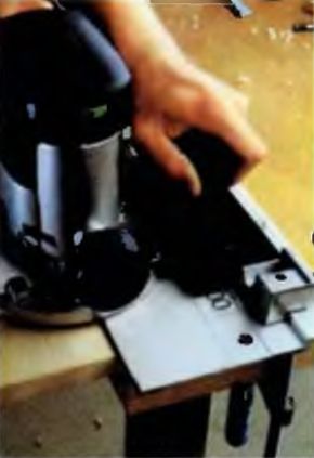 При установке аппарата на основную плиту ее толщина значительно уменьшает вылет фрезы. Поэтому для установки агрегата на толстые столешницы принято использовать более тонкие монтажные пластины из прочных материалов (стали, дюралюминия, поликарбоната, гетинакса или стеклотекстолита). Изготавливается пластина следующим образом.