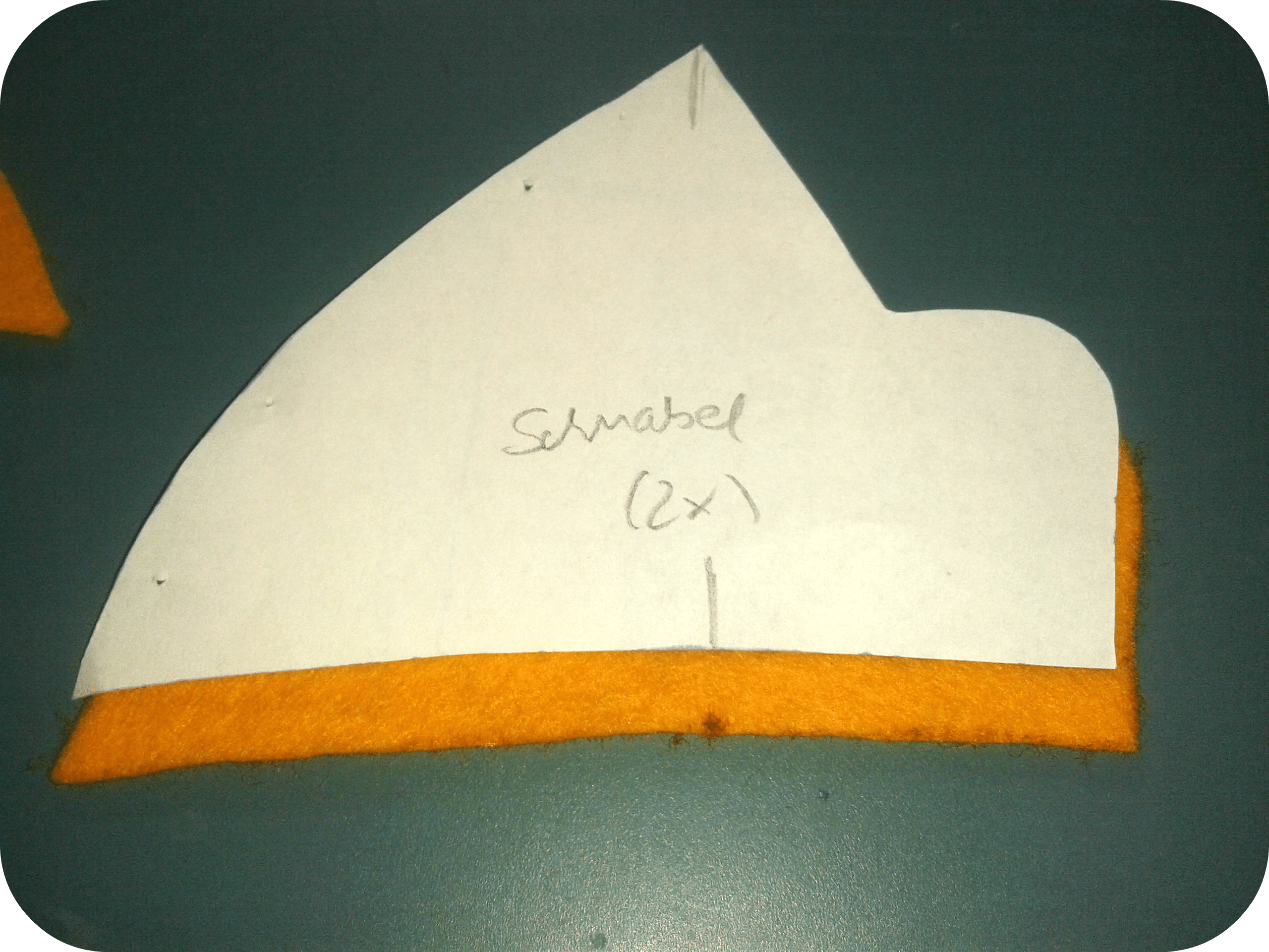 Изготавливаем лицевую часть вытачки, которые находятся на лбу, склеиваем. Клюв надо вклеить в проём носа.