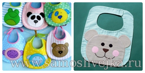 Нагрудник, в обиходе – слюнявчик, понадобится деткам примерно с 3-х месячного возраста. В интернете можно найти два варианта выкроек для грудничков – на липучках и на завязках (например, вот ). Ткань нужно выбирать такую, которая легко стирается и впитывает в себя жидкость. Изнаночную сторону можно выполнить из клеенки, а слюнявчик выполнить из нескольких слоев ткани (см. ). Нужно обязательно подобрать размер, хорошо подходящий для области шеи, чтобы нагрудник не был слишком свободным и тугим.