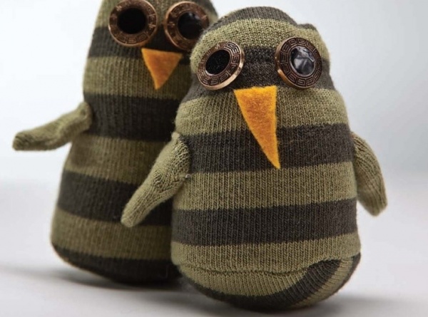 Кажется, первое, что фантазерки рукодельницы начали делать из ненужных носочков – это игрушки. Особенно колоритно смотрятся изделия из махровых или объемных вязаных носков. Набивать игрушки вы можете теми же носочками, а можете использовать синтепон или холлофайбер.