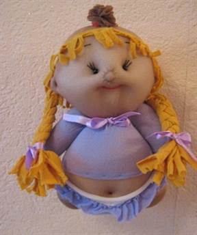 Пупсу из такой ткани легче придать форму головы и сделать мимику лица. Так получаются забавные куколки, которые порадуют любого ребенка.