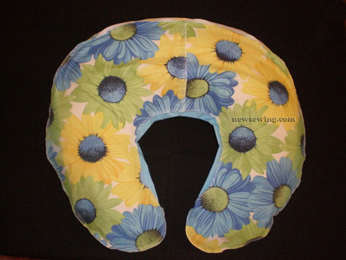 Подобным образом шьется наволочка, только вместо небольшого отверстия для наполнителя оставляется щель чуть большего размера, в нее можно пришить застежку-липучку или вставить молнию. Для наволочки ткань желательно выбрать из устойчивого к частой стирке нейтрального волокна, так как в дальнейшем она будет использоваться для кормления малыша.