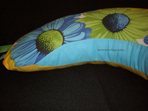 Внутренняя вставка, которую мы вшиваем по малому радиусу, делает подушку более удобной — это усовершенствованный вариант. Если для вас пошив такой подушки кажется сложным можно эту деталь не вшивать. От этого подушка не потеряет своей функциональности.