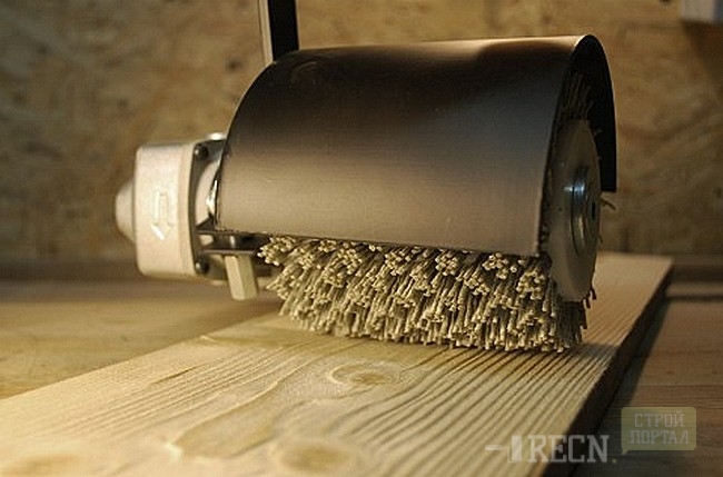 При очищении поверхности дерева от мягких волокон, металлическую щетку рекомендуется водить в направлении их роста. Скорость движения щетки также должна быть одинаковой на всех участках поверхности.