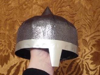 Использовать такую же технику можно, если вы хотите сделать шлем из фольги. Для того чтобы получился шлем, вместо серебряной краски возьмите обычную кухонную фольгу и разгладьте ее по поверхности головного убора. Приклеивать фольгу можно на клей ПВА. А в конце вы можете декорировать головной убор по вашему желанию.