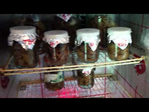 Увлажненный подготовленный табак складывается в стеклянные банки и плотно закрывается крышкой, чтобы влага не испарилась. На регуляторе устанавливается температура +50°С, табак размещается на полках шкафа.