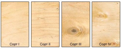 По качеству применяемой древесины выделяется 5 сортов. Первый самый «чистый», без сучков и видимых дефектов. Пятый — допускает недостачи шпона, неровности, выпавшие сучки. Для шкафа, который будет краситься укрывистыми красками, можно использовать 2-3 сорт