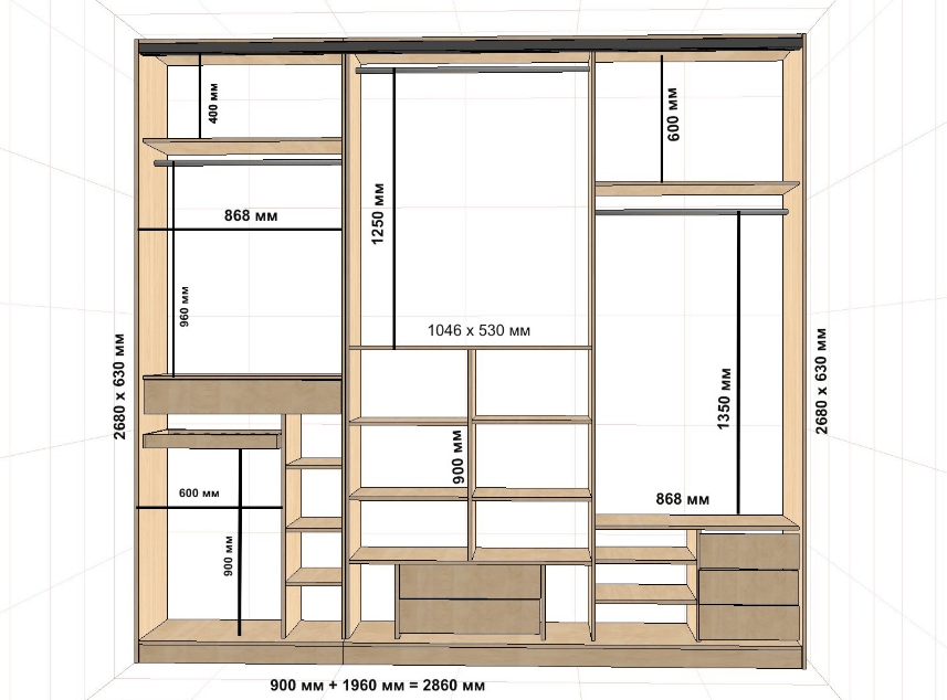 Важно! Перед тем, как покупать необходимые материалы и инструменты, посмотрите на эскиз готового шкафа-купе еще раз, чтобы ничего не забыть.
