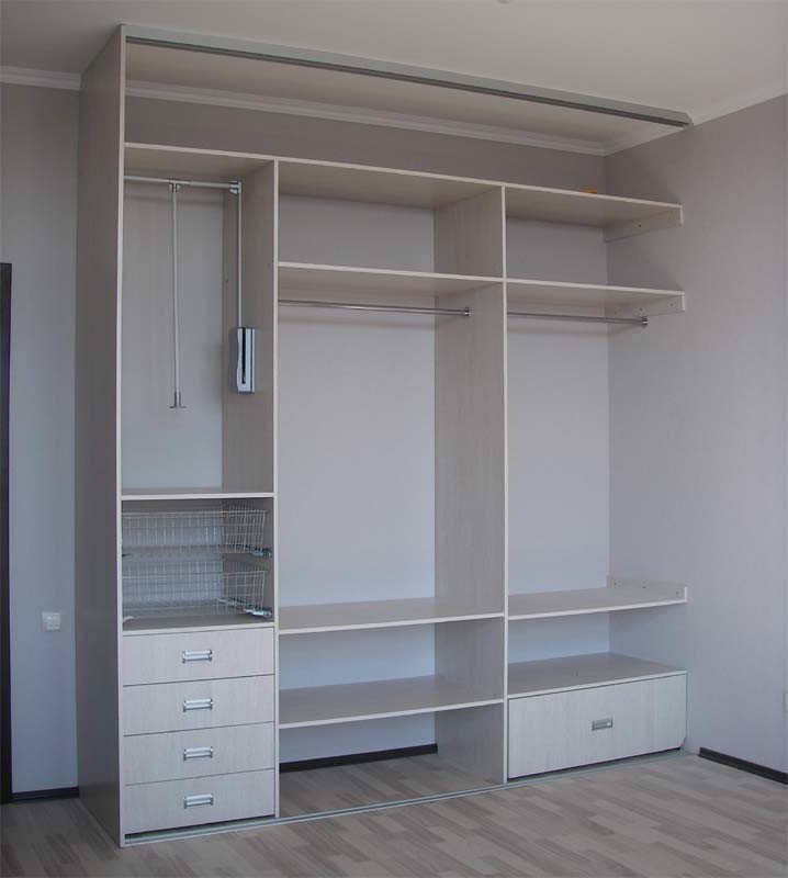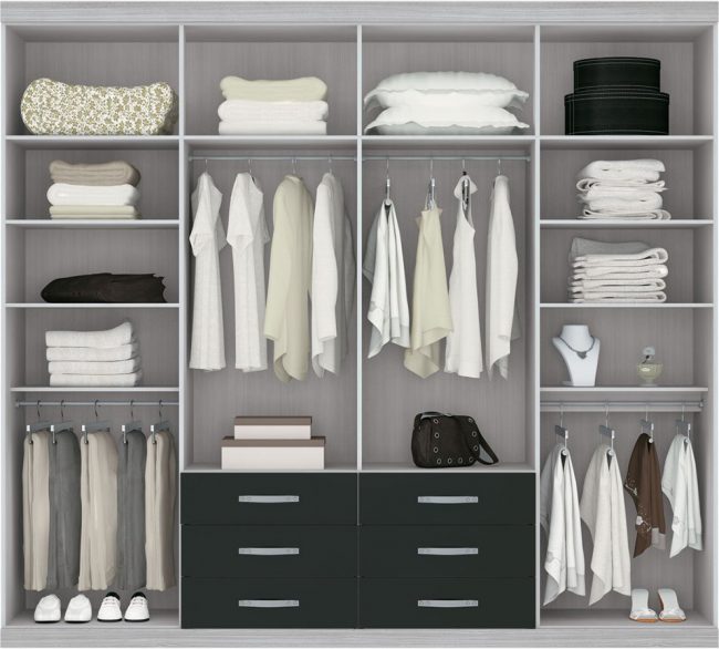 Размеры каждого отсека и их форма зависят от конкретного наполнения. Правильное его планирование обеспечивает удобство пользования шкафом.