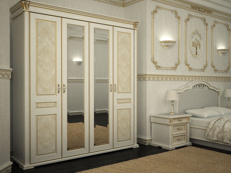 - Барокко. Характерный элемент — имитация резьбы по краям дверных створок. В декоре присутствует золотистый цвет. Желательно присутствие большого зеркала.