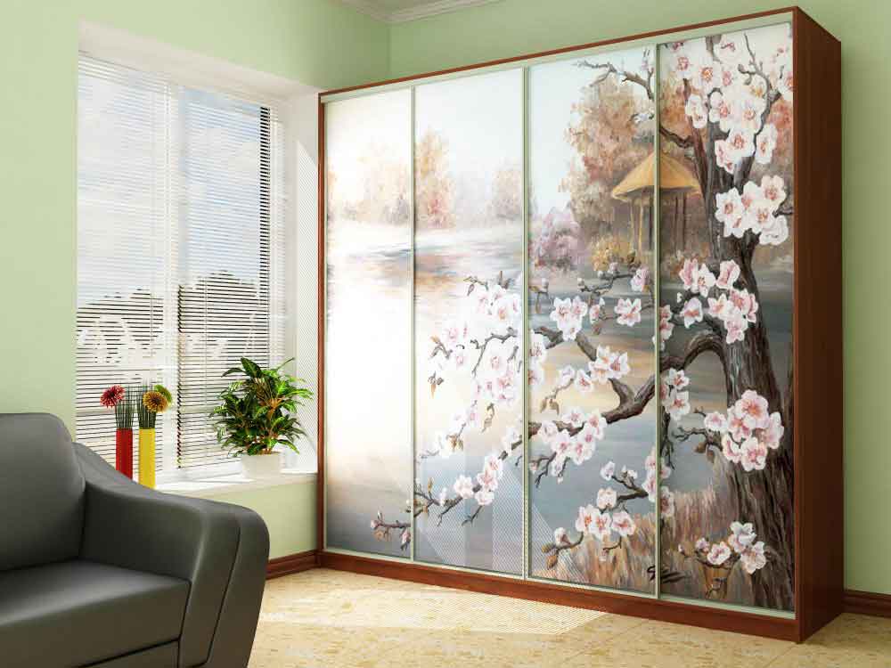 Развитие технологий печати позволило переносить любые изображения на специальную пленку. Изображение получается очень реалистичным, фотографически точным, а сама технология называется фотопечатью. Эти изображения наклеиваются на фасады и шкафов купе в том числе. Изображение может быть любое. Хоть свою фотографию распечатывайте. Важно чтобы оно было четким.