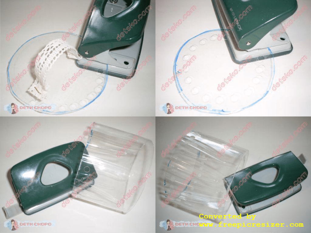 Затем берем дырокол и начинаем делать отверстия в пластинах, не доходя до края где-то 5 мм., чтобы было красиво.