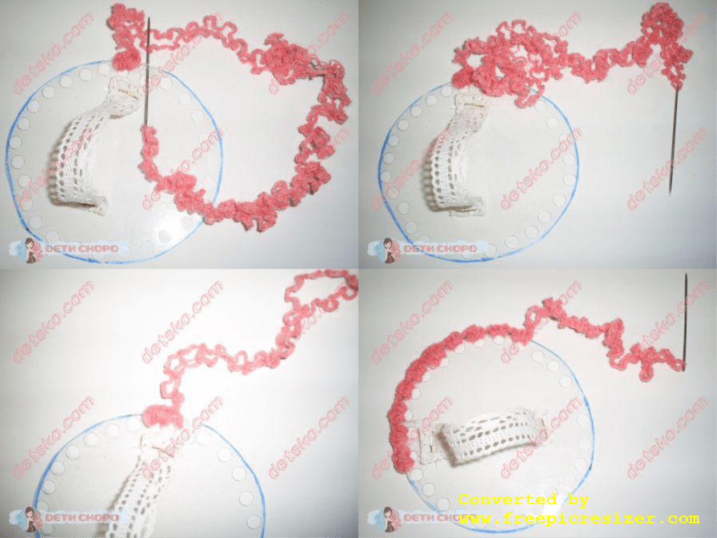 Потом просто набираем петлю цепочки и провязываем столбик без накида в следующую дырочку.
