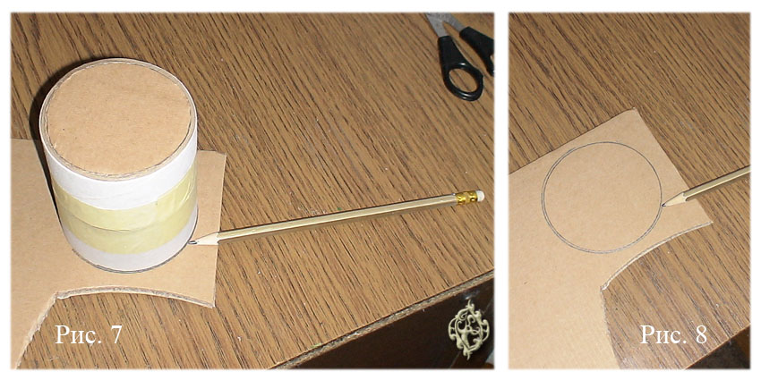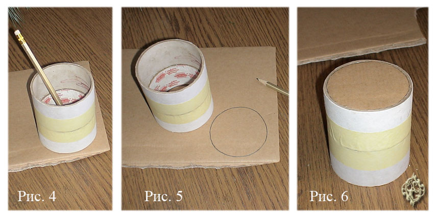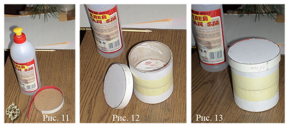 Делаем дно по простой схеме – рисуем круг равный внутреннему диаметру заготовки, вырезаем и приклеиваем его, вдавливая внутрь: