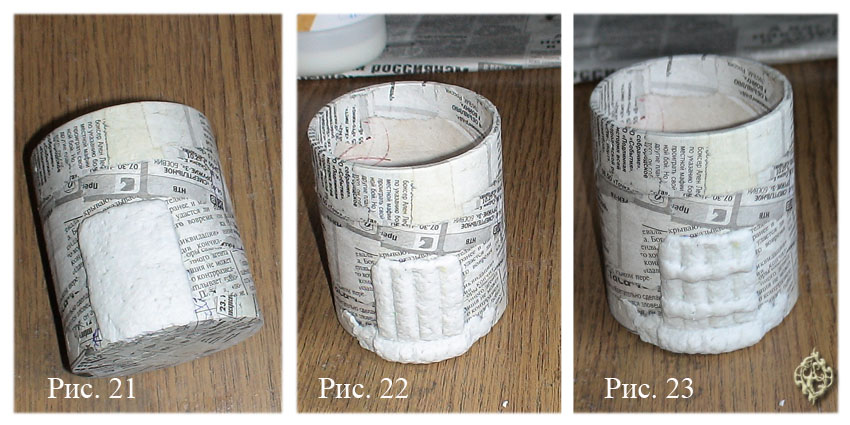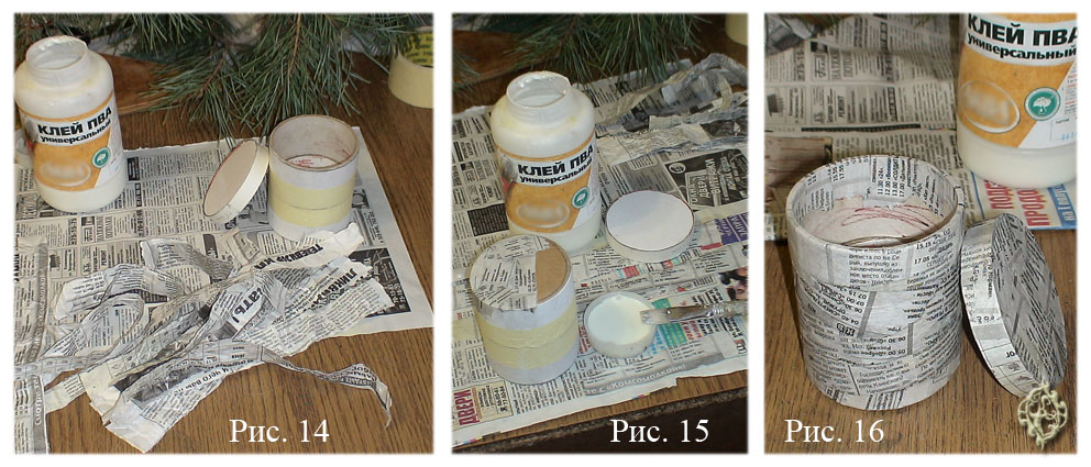 Основой послужит также пластмассовая банка из-под крема, ее покрывают по методу папье-маше: