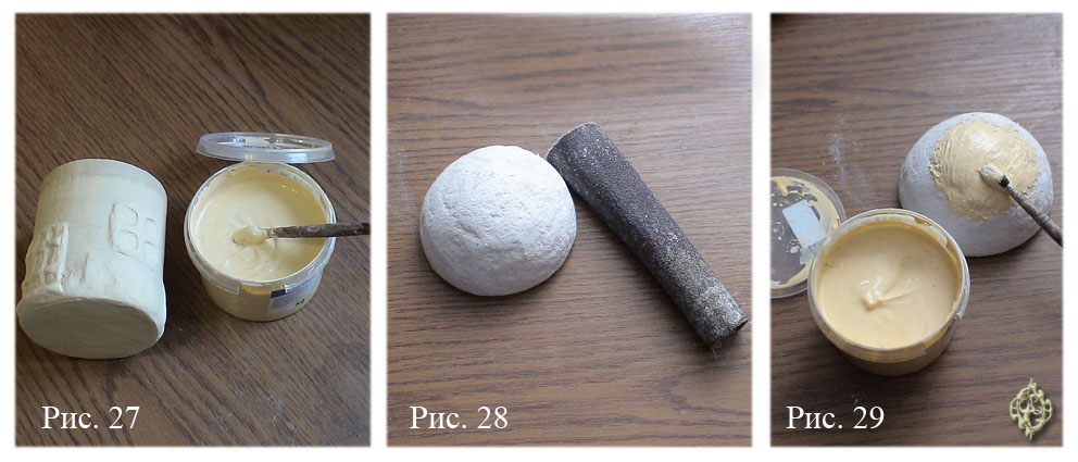 После того, как шкатулка высохнет – покроем ее грунтовкой или шпаклевкой для дерева. Если крышка и сама шкатулка получились сильно корявыми, можно поработать наждачной бумагой и только затем грунтовать (рис. 27-29).