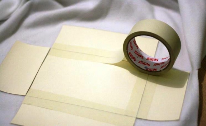 - Малярным скотчем закрываются части шкатулки, которые не будут декорироваться.