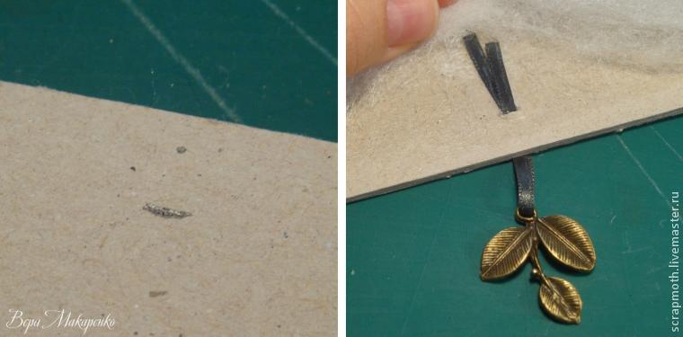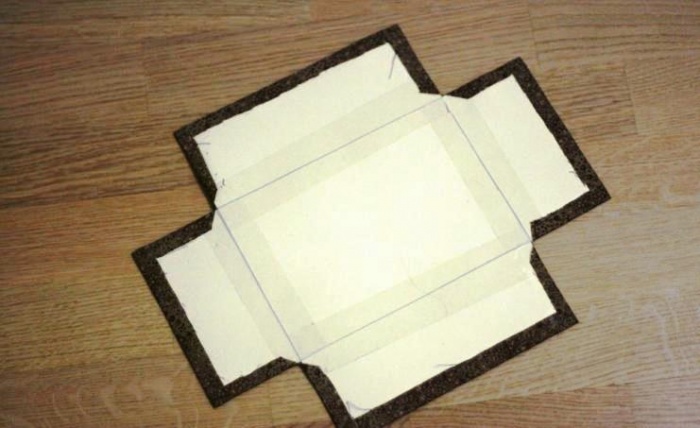 - Затем прикладывают заготовку крышки, сгибают полосу бумаги и крепят ее к внутренней стороне.