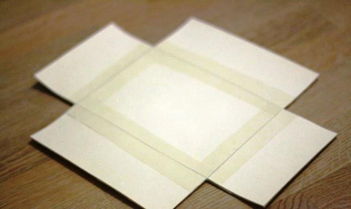 - Сгибают все заготовки по размеченным местам. Затем приступают к склеиванию.