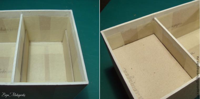 Внутреннюю часть желательно обклеить однотонной бумагой