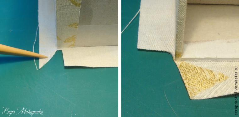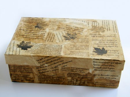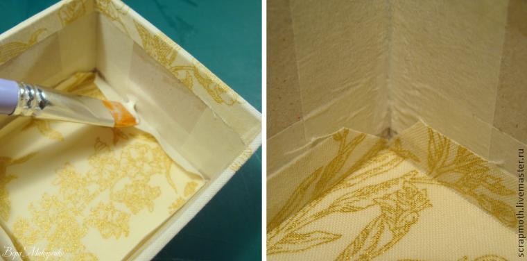- Бумаге требуется немного полежать, а потом ее губкой плотно прижимают к шкатулке.