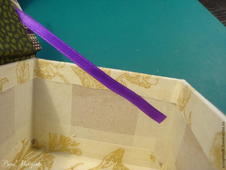 Красиво будет смотреться, если покрыть шкатулку тканью и тесьмой
