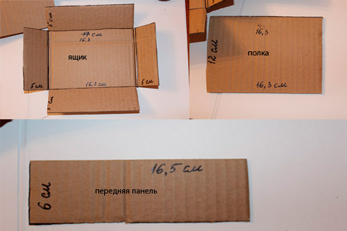Второй вариант более сложный, так как в нем необходимо собирать крышку по частям. В данном случае требуется применение толстого картона, желательно упаковочного и гофрированного.