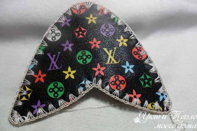 Для цветастой поверхности подобрать подходящее украшение не просто. Перебрав множество вариантов, остановилась на бантиках, оставшихся от старой сумки.