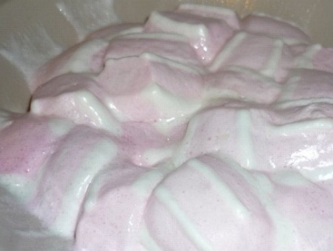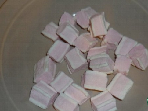 - Высыпьте зефир в глубокую миску и добавьте воды из расчета 1 столовая ложка на 100 граммов. Вместо воды можно использовать лимонный сок, если вы любите не слишком сладкие изделия.