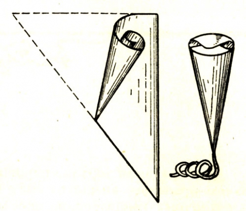 На пергаменте рисуют различные снежинки и другие изображения. После этого лист переворачивают на другую сторону (линии рисунка будут хорошо видны). С помощью кондитерского шприца наносят шоколад по контурам. После затвердения наносят украшения на лакомство.