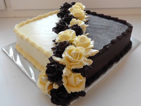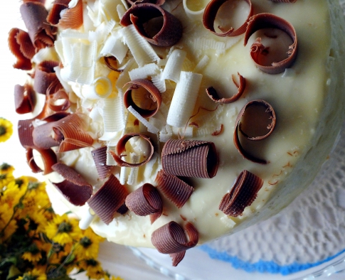 Цветы из белого шоколада будут великолепно смотреться на темном фоне тортика.