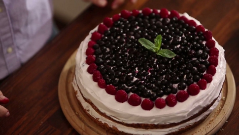 - Черника, бананы, персики, яблоки, ананасы и киви. Торт, украшенный ягодами и шоколадом, смотрится очень эффектно.