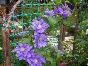 Если сорт клематиса имеет усики и присоски, то в дальнейшем прутьям просто нужно будет задавать направление, а лиана обовьет опору и будет хорошо держаться сама. Подвязывать к сетке нужно будет только мелкоцветковые сорта.