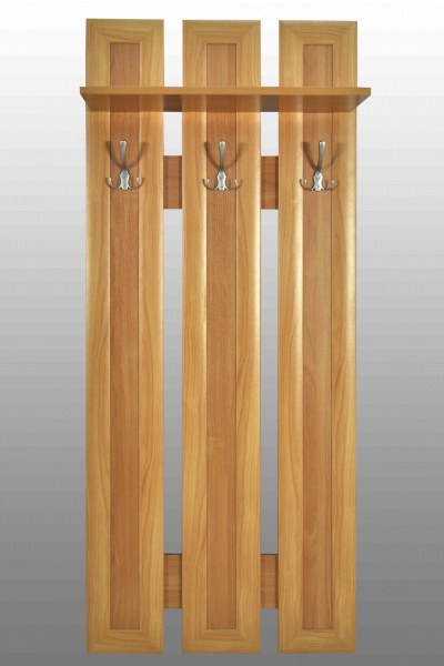 Относительно вешалок-панно у мастера-любителя появляется дополнительная возможность, а именно: снабдить такую боковиной на дальнем от входной двери краю. Возможно, не доходящей до низу, с укосом или выемкой. Фабричные так не делают: вешалка должна быть рассчитана на выпирание одежды сбоку. Одна боковина этому почти не мешает, но неизвестно, как вешалка будет стоять у покупателя, а делать правые и левые вешалки накладно.