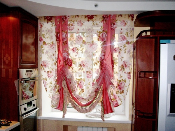 Шторы на кухне в 2016 году многие дизайнеры выполняют в старинном стиле. Модными считаются различные драпировки, каемки и узоры. Вы можете или приобрести ткань с уже готовыми нашивками, или пришить их самостоятельно. Все зависит от вашей фантазии и умений.