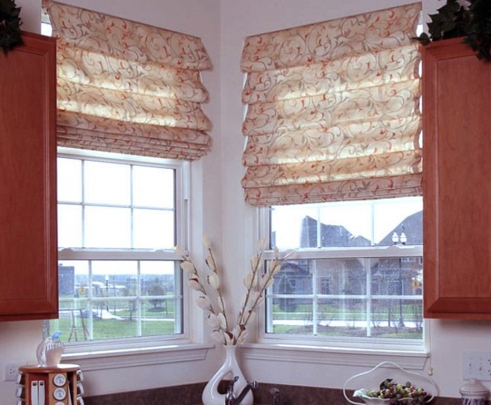Такая модель подойдет для особо изысканных интерьеров: они не сматываются в рулон, а складываются изящными складками, когда их поднимают. Римские шторы шьют из плотных светлых и обязательно натуральных тканей, крепят, как и рулонные, внутри оконного проема. Однако нуждаются в частой чистке, так как собирают пыль.