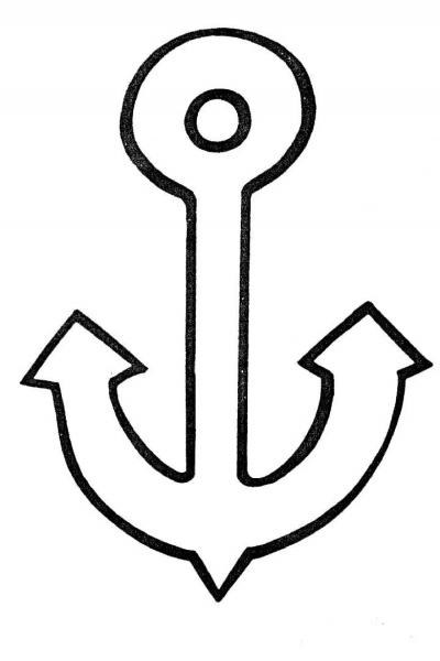 - Еще одним атрибутом морской тематики является якорь, его также можно сделать из плотного картона, а затем разукрасить или задекорировать бумагой. Для якоря вам также понадобится шаблон или выкройка, которую вы можете нарисовать сами или распечатать уже готовую: