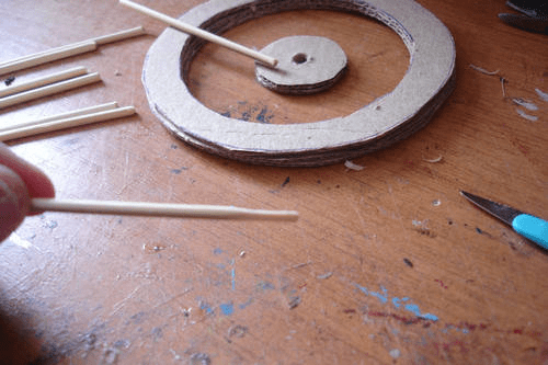 Далее нужно подготовить лучи из деревянных шпажек. Отмерьте необходимую длину и с помощью ножа нарежьте лучи.