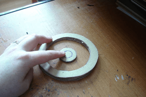 Пока наша конструкция подсыхает, вырезаем два больших круга из коробки для обуви.