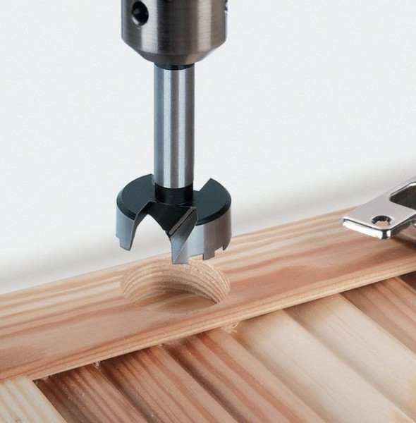 В зависимости от выбранной ширины лестницы (чаще всего это 80 или 100 см), материал нарезается, в основных стойках при помощи дрели и подходящего пера проделываются выемки — отверстия, в которые будут вставляться ступени. Если диаметр черенка немного больше, чем отверстие, можно сточить его торец.