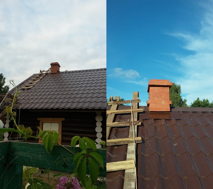 Отверстие в крыше делаем диаметром больше диаметра трубы для того, чтобы проложить между крышей и трубой изоляцию.