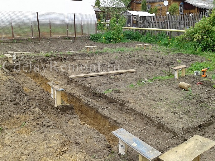 - ленточный фундамент – самый простой тип для несложных, нетяжёлых построек,
