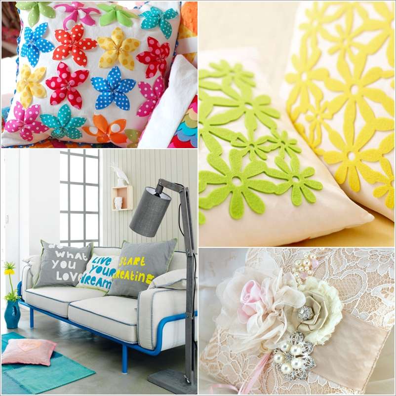 Подобные изделия легко получают из элементов, связанных крючком или спицами. Для обновления чехлов, наволочек, салфеток, скатертей применяют технику аппликации. Вырезаются яркие красивые фрагменты из любой ткани, фиксируют при помощи клеевой основы и обрабатывают по контуру тесьмой, шнуром или прошивают декоративным швом.