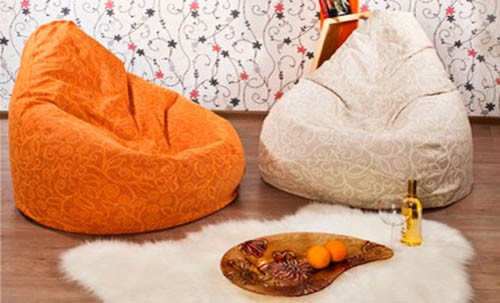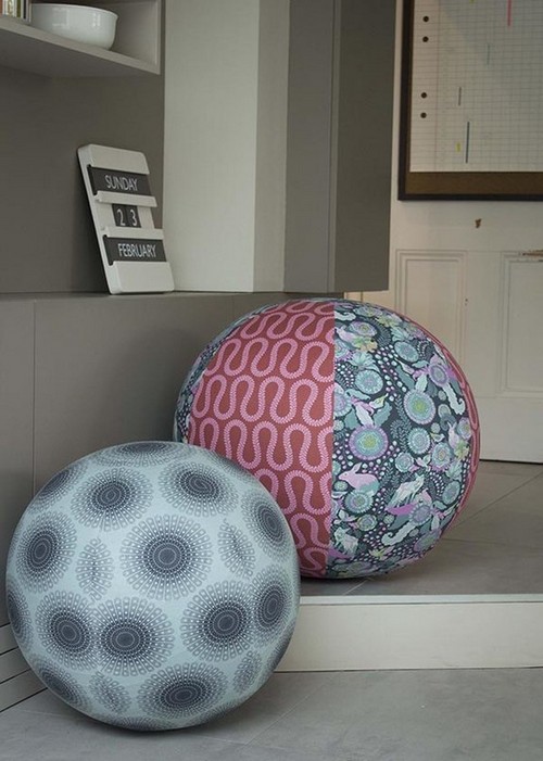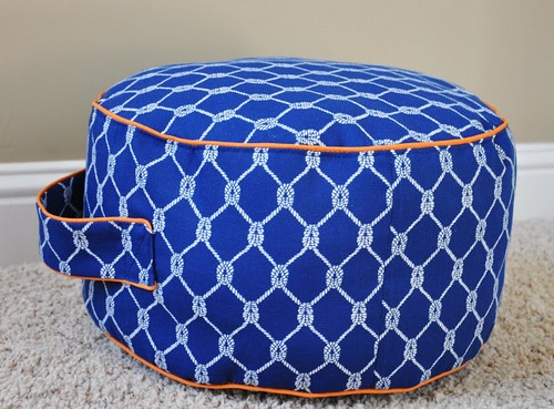 Если вы не обладаете навыками плотника и столяра, но можете шить и кроить, то следующий вариант пуфика именно для вас – мягкий пуф-мешок. Вам понадобится красивый, но крепкий материал для самого пуфа, а также ткань для внутреннего чехла и наполнитель.