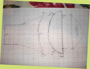 - Соединяем точки К и В полукругом – это горловина к которой позже будет прикреплен воротник (если он нужен).