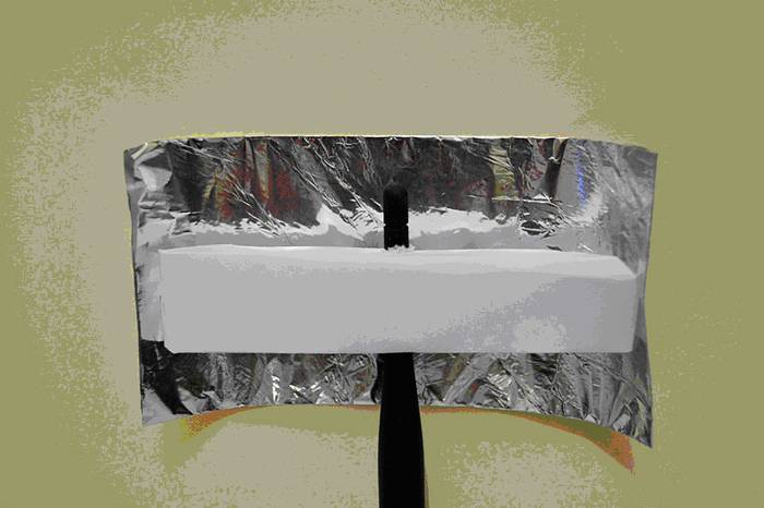 Этот способ поможет модернизировать устройство, используя отражатель. Для его изготовления понадобится фольга и плотная бумага или картон.