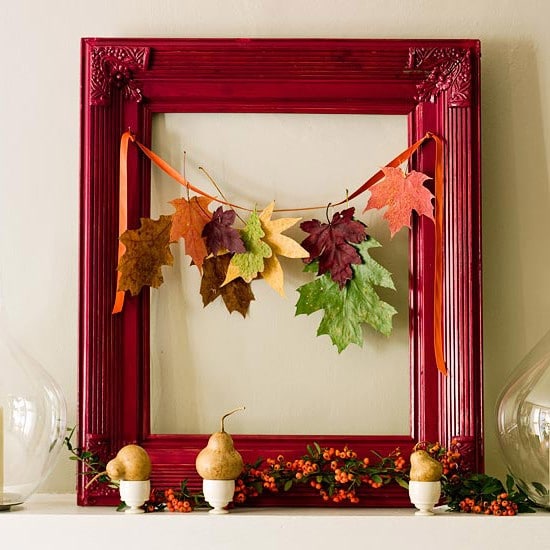 Нанизав листья на тонкую нить, вы получите яркую гирлянду, которая внесет в дом осеннее настроение.